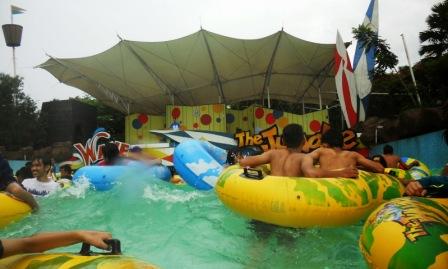 | Kolam ombak/wave pool, salah satu wahana di The Jungle Waterpark Bogor |